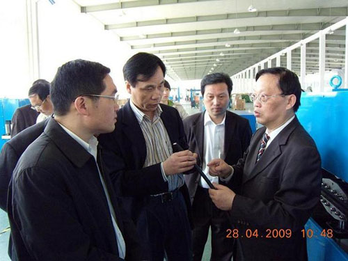 马市长在董事长张祥金、总经理孙建文、总工程师李恩铭的陪同下参观了我公司车间,对我公司先进的设备赞叹不已,并表示3G行业必定是未来通讯行业的发展趋势,我公司的前景十分广阔,并表达了殷切的希望,希望我们能成为省内生产同类产品的领头羊。
