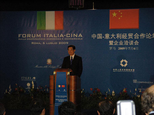 国家主席胡锦涛在中意经贸合作论坛上演讲